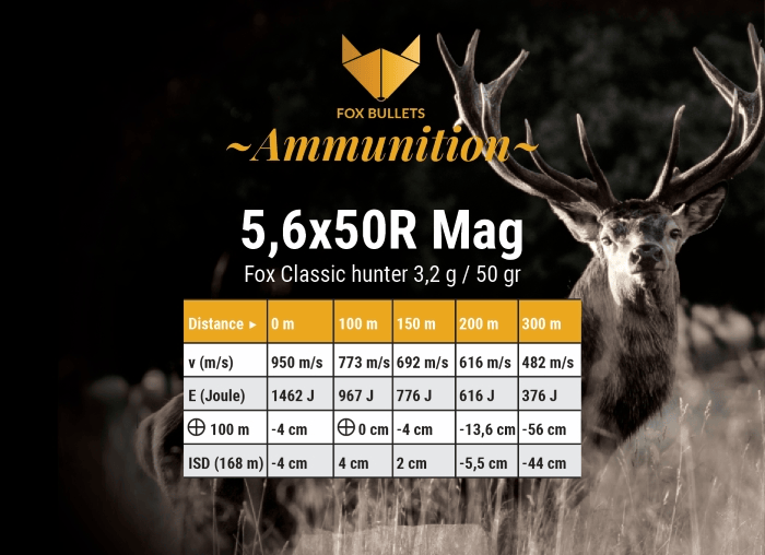 | Fox Bullets Munition: | 5,6x50 R Mag. / 50 gr. / 3,2 g. / 20 Stück |
